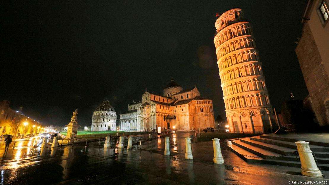 2021年的橙色日期间,比萨斜塔染成了橙色图像来源:FabioMuzzi/ZUMA/IMAGO